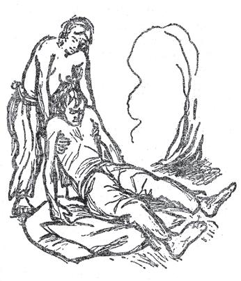 中尉和马柳特卡面对面坐在火旁,美滋滋地转动着身子,凑向热烘烘的火焰取暖。